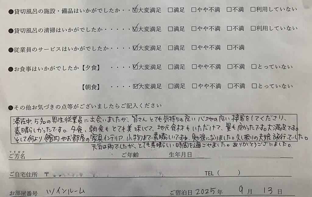 アンケート(10)-1 2025年9月13日ご宿泊のお客様から