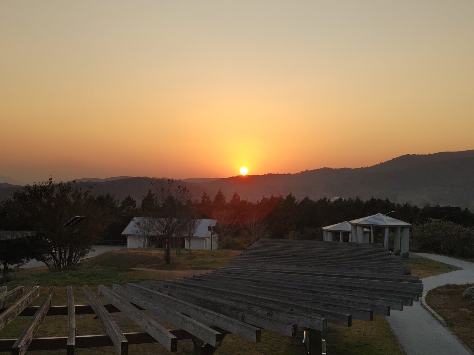 車でホテルへ戻る途中、ふと立ち寄った秋吉台で、思いがけず夕日に出会いました。