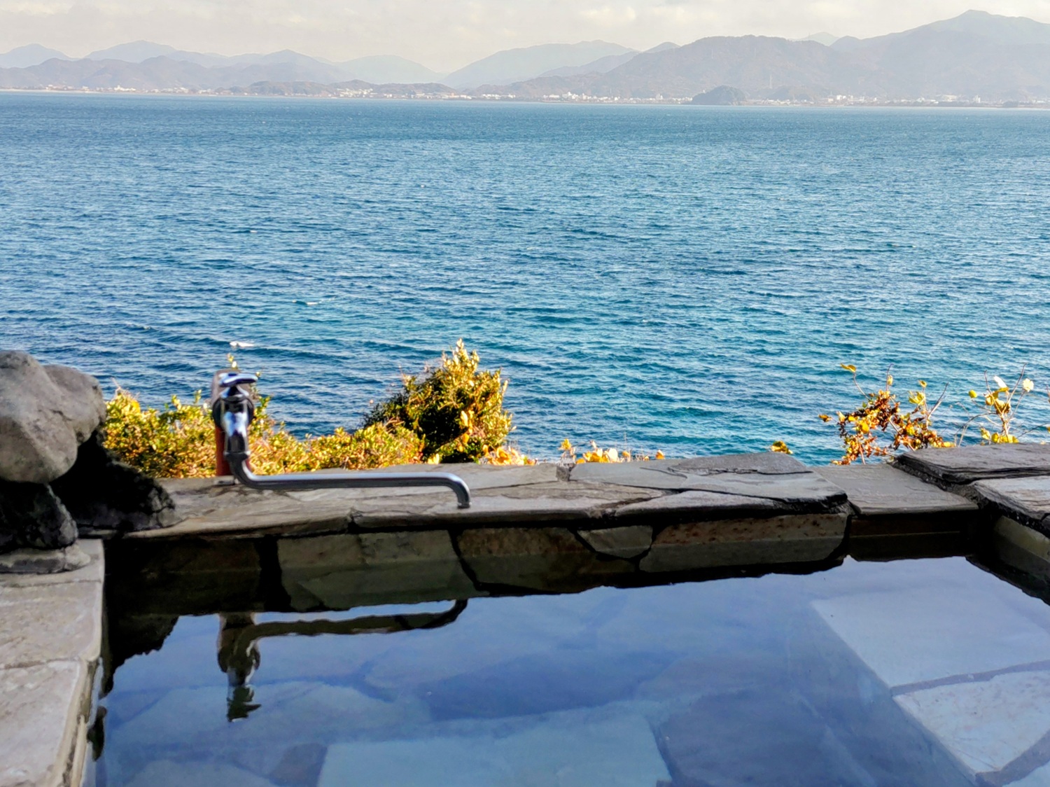 海と空がひとつになる露天風呂で、日帰りでも、心も体もゆるりとほどけていきます。
