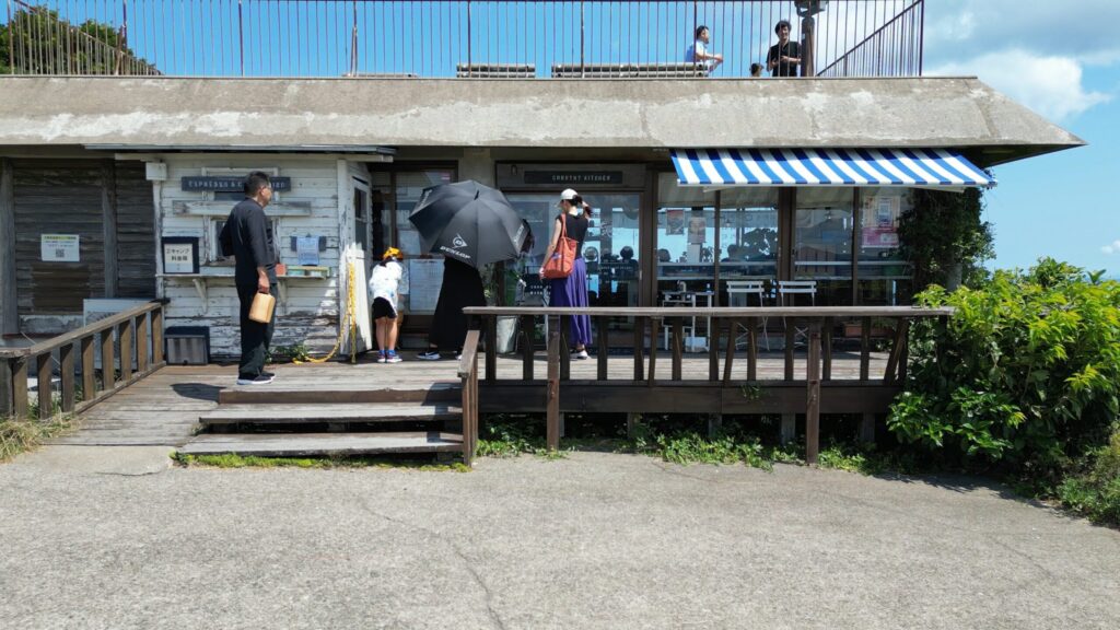 芝生が広がる高原ではキャンプも楽しめ、自然を満喫しながらゆったりとした時間を過ごせます。敷地内にはカントリー調のカフェもあり、大きな窓から日本海を一望しながら、コーヒー片手に贅沢なひとときを過ごすことができます。