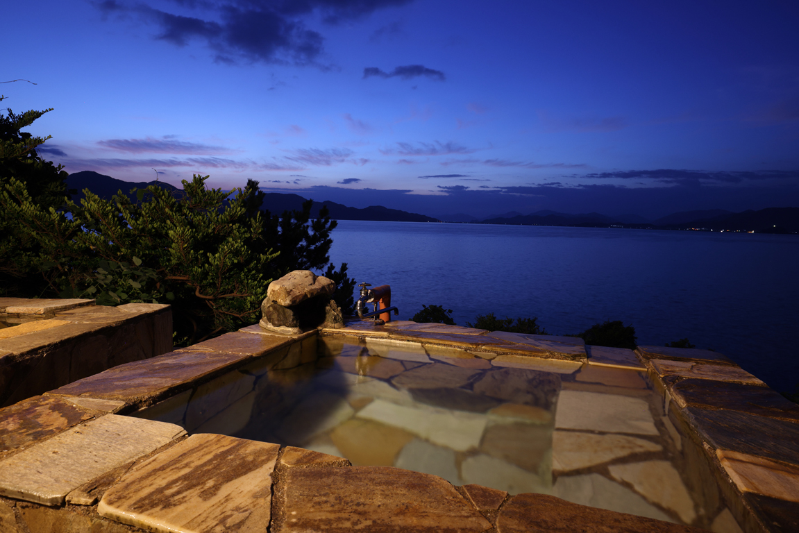 絶景を独り占めしてください!こちらの露天風呂はテレビアニメ「サザエさん」のオープニングに登場! 目前に美しい海が広がっているかけ流し美肌温泉。